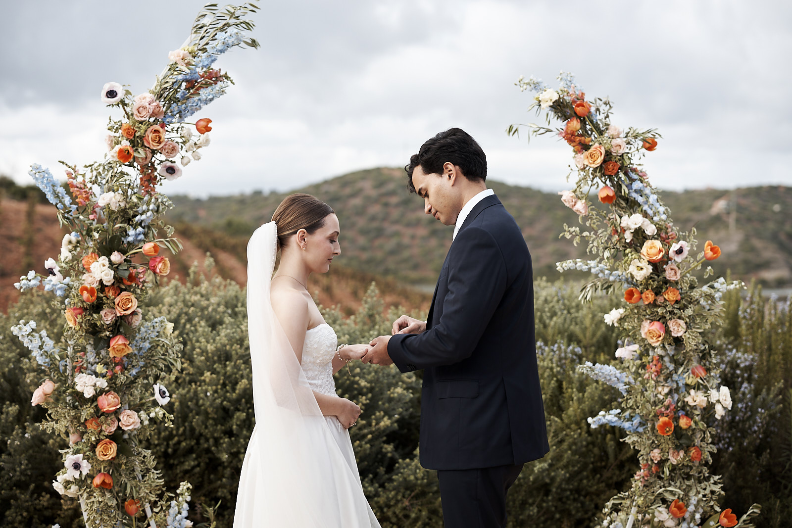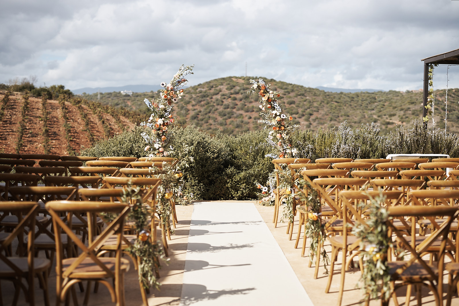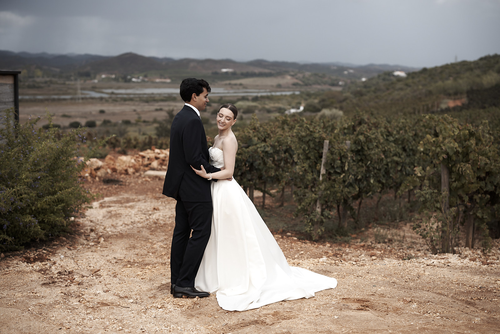 Die Zeremonie im Arvad Vineyard fand umgeben von sanften Weinreben und warmem Nachmittagslicht statt. Die Kulisse des Weinguts schuf eine natürliche Eleganz, die die visuelle Erzählung des Tages unterstrich, ohne inszeniert zu wirken. In solchen Momenten wird die Landschaft selbst Teil der Geschichte — atmosphärisch, zeitlos und unverkennbar geprägt von der Algarve.