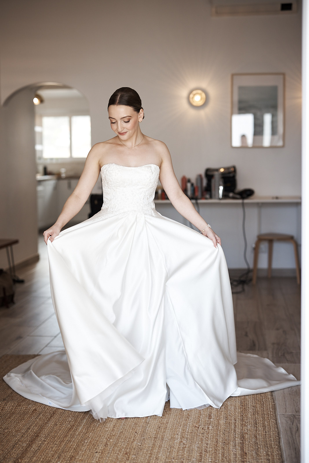 Der Tag begann in der Altstadt von Praia da Luz, wo die Vorbereitungen in privaten Villen im weichen portugiesischen Licht stattfanden. Diese ruhigen Stunden am Morgen — Lachen mit den Brautjungfern, stille Gedanken und die sanfte Vorfreude auf die Zeremonie — gaben der Hochzeit eine besondere Atmosphäre, die zugleich stilvoll und sehr persönlich wirkte. Als Hochzeitsfotografen an der Algarve legen wir großen Wert darauf, genau diese authentischen Momente mit Ruhe und Feingefühl festzuhalten.