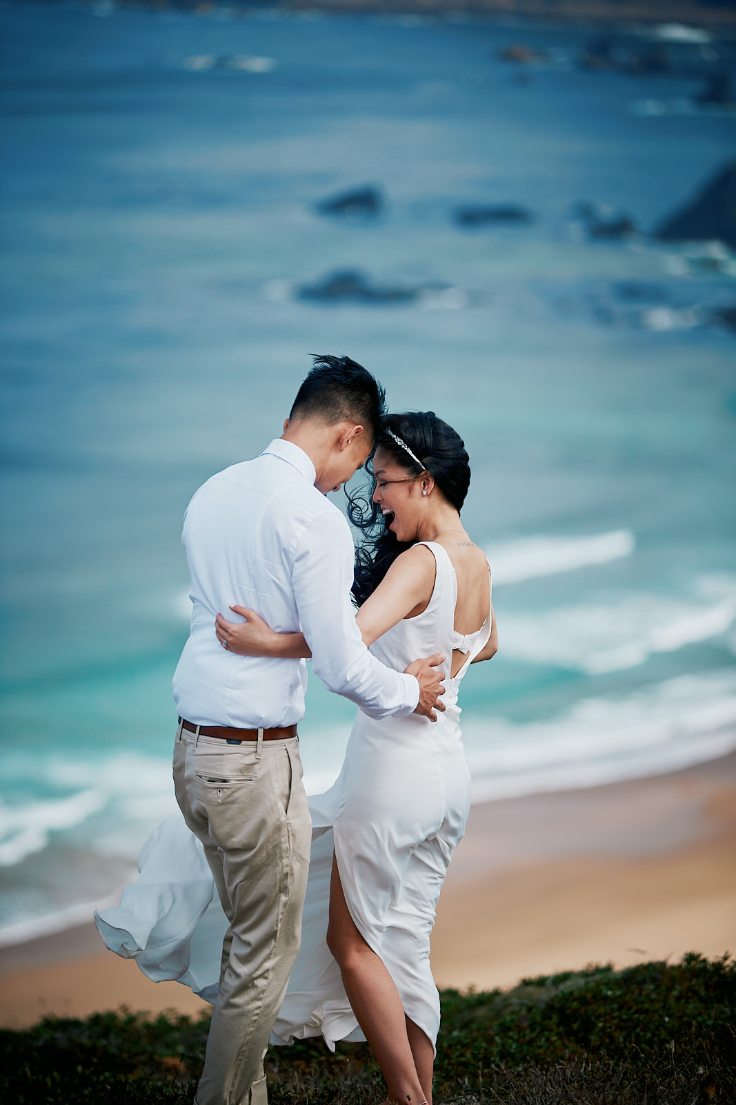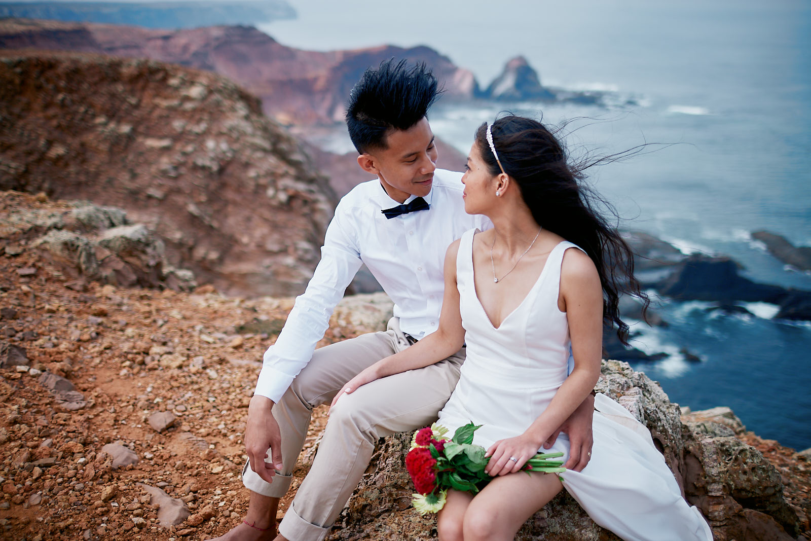 Jodie und Anthony entschieden sich dafür, ihre Hochzeit zu zweit auf dem Kliff von Senhora da Rocha zu feiern.