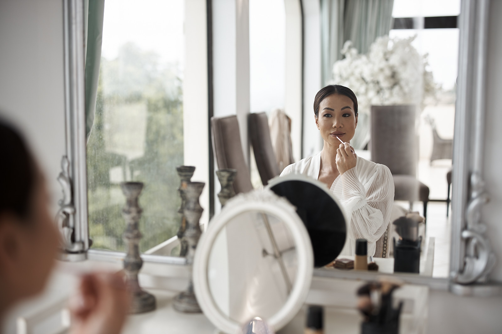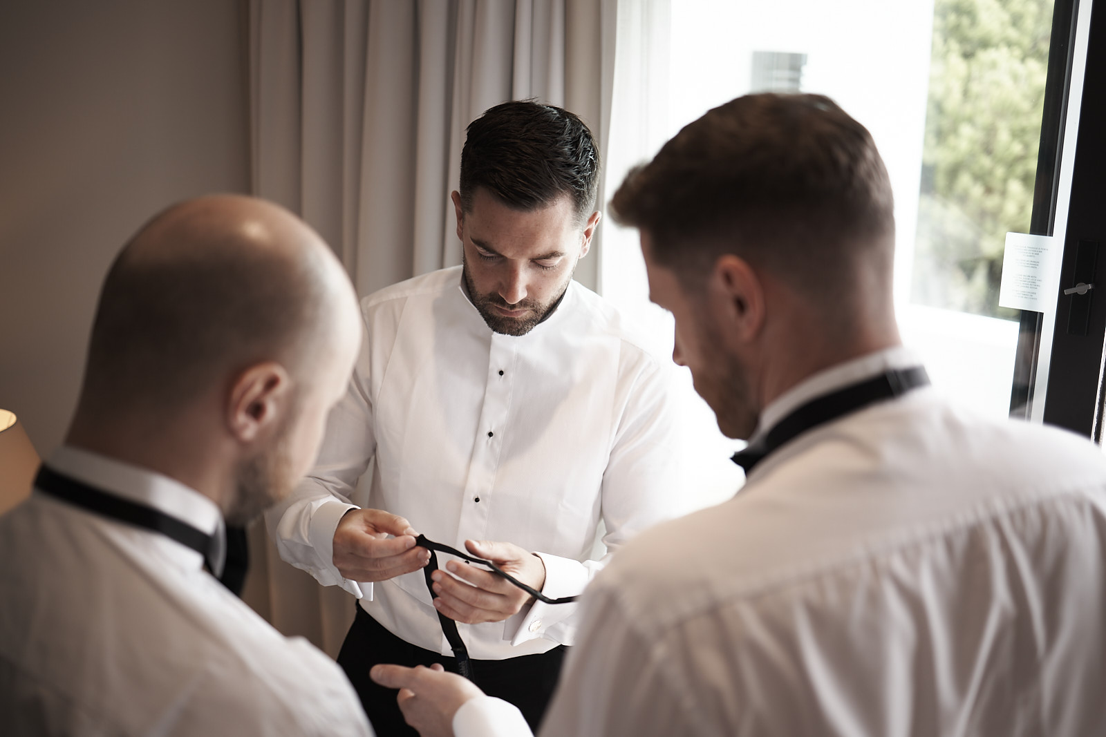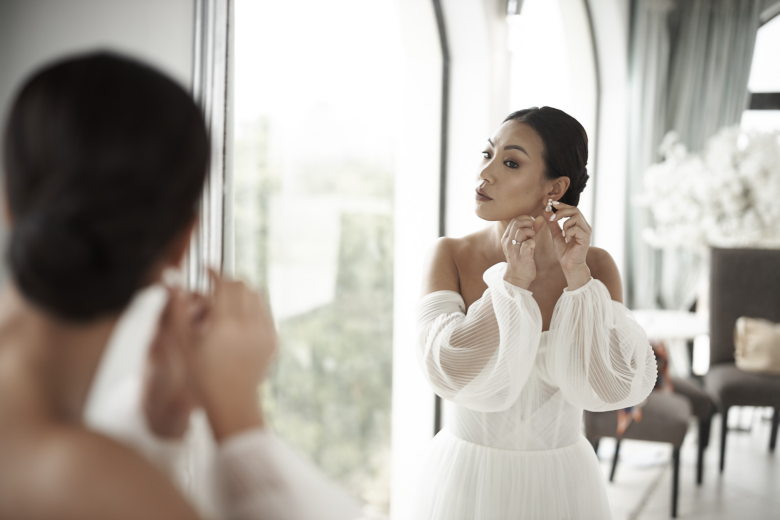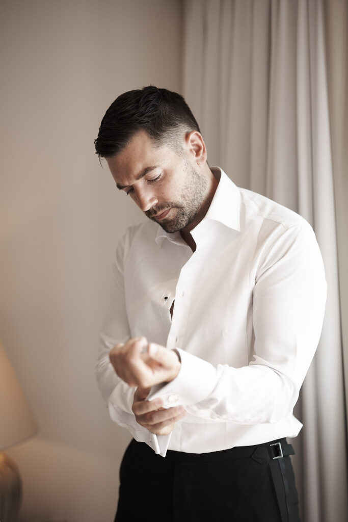 Der Morgen begann mit ruhigen Vorbereitungen in stilvollen Räumen, in denen die Vorfreude des Tages in kleinen Momenten und gemeinsamem Lachen spürbar wurde. Das weiche Licht, die entspannte Stimmung und die bedeutungsvollen Blicke machten diese frühen Augenblicke zu einem wichtigen Teil der fotografischen Geschichte.