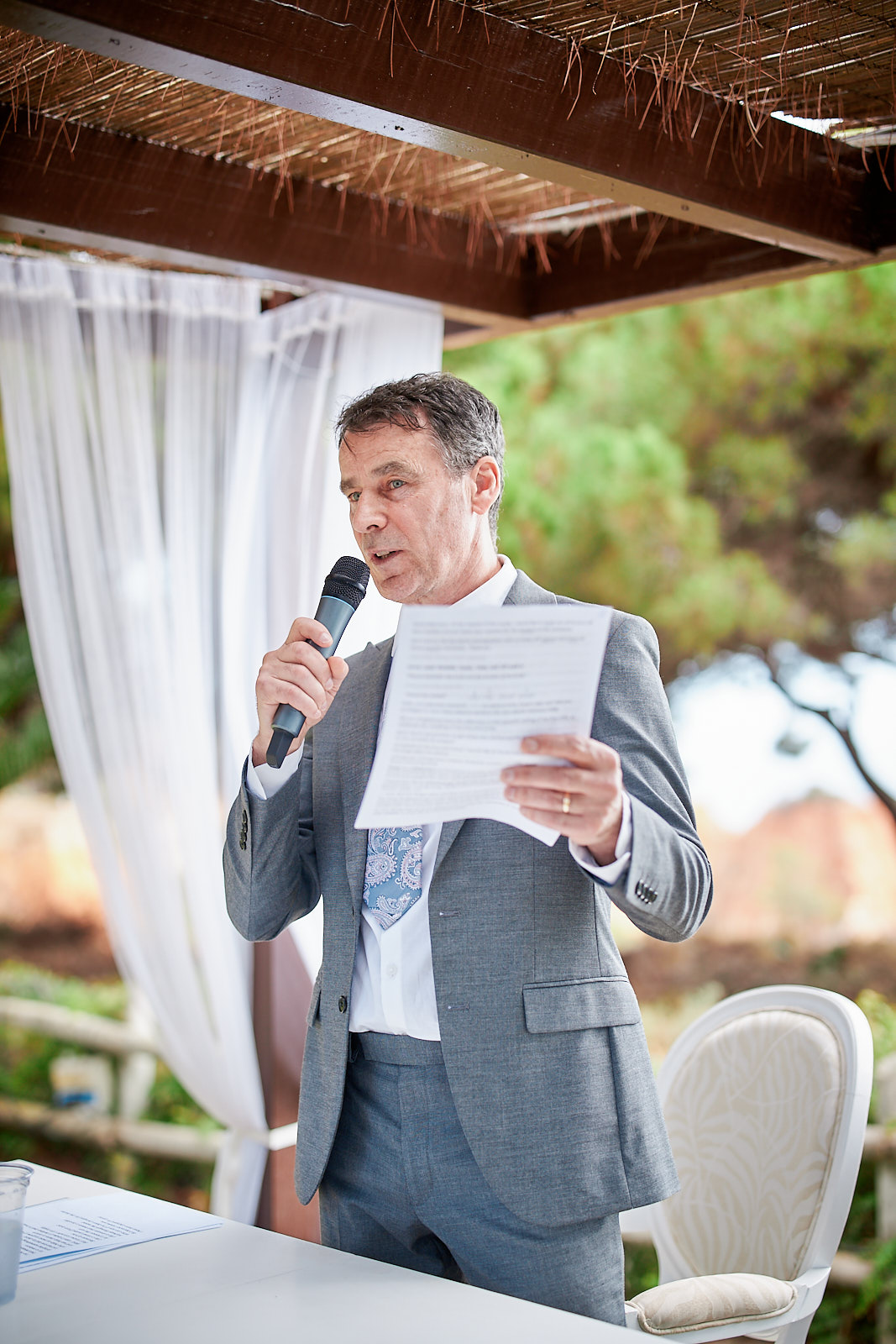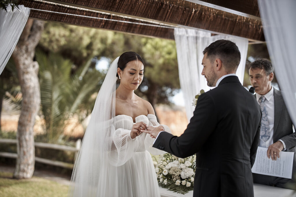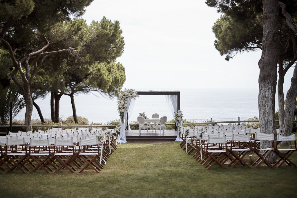 Ihre Feier fand hoch über dem Atlantik statt, wo die markanten roten Klippen auf den weiten Blick über das Meer treffen. Diese Kulisse wirkte zugleich weitläufig und intim und bot einen natürlichen Rahmen für die Zeremonie und die Paarporträts. Als Hochzeitsfotografen an der Algarve erleben wir im Pine Cliffs Resort immer wieder, wie besonders das Licht und die Aussicht dort sind — Bilder wirken hier gleichzeitig atmosphärisch, zeitlos und persönlich.